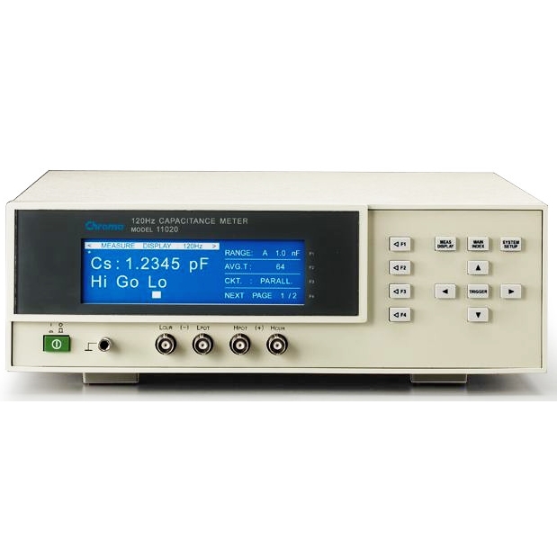 Chroma 11020 este un capacimetru de mare precizie si viteza. Masuratorile pot fi facute la frecventele de 100Hz, 120Hz si 1kHz. Timpul de masurare este de numai 5 ms la frecventa de 1kHz si sub 15 ms la frecventele de 100 si 120 Hz.