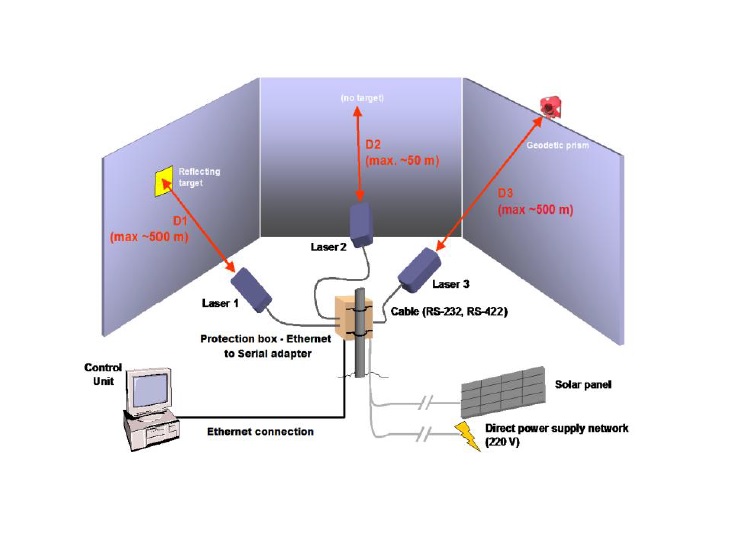 Este un sistem modular, care include electronică, sursă de alimentare, dispozitive de comunicații de date și software de control capabil să monitorizeze în mod automat și continuu mișcările milimetrice.