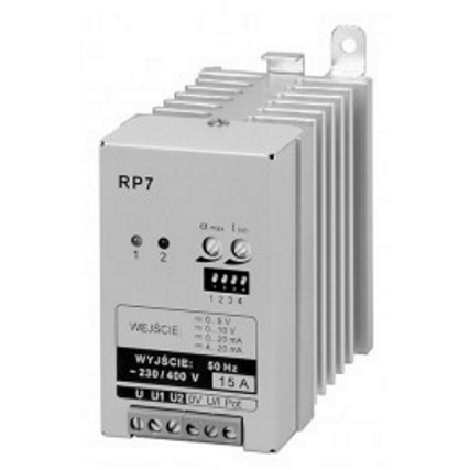 Power controller RP7 type allows to control the delivered power from an a.c. voltage source to a resistance or resistance-inductive receiver of electrical energy and the rotational speed of 1-phase induction motors with a capacitor or commutator motors at small loads