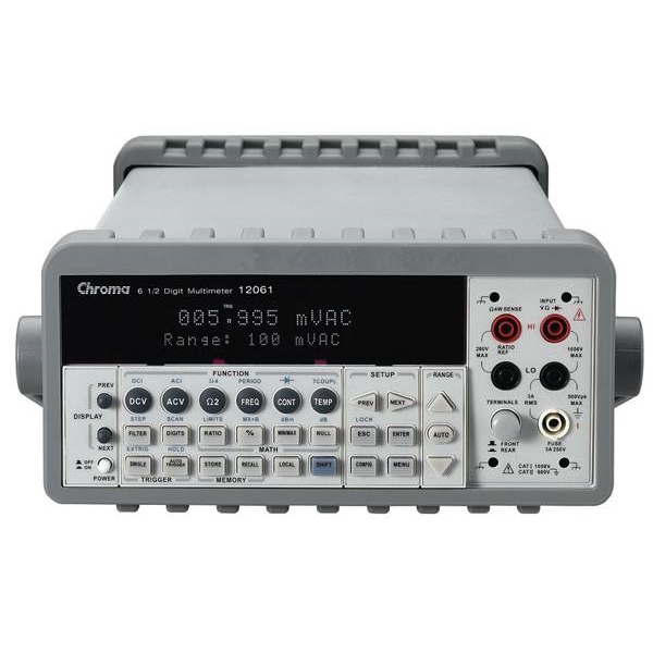 Chroma 12061 oferă 11 tipuri de funcții de măsurare pentru tensiune / curent continuu, tensiune / curent alternativ, rezistență (măsurare pe 2/4 fire), perioadă, frecvență, diodă, continuitate și temperatură, precum și diverse funcții matematice:  NULL, Max / Min / Medie, Limită superioară / inferioară, Procent / Raport , dB / dBm și altele.