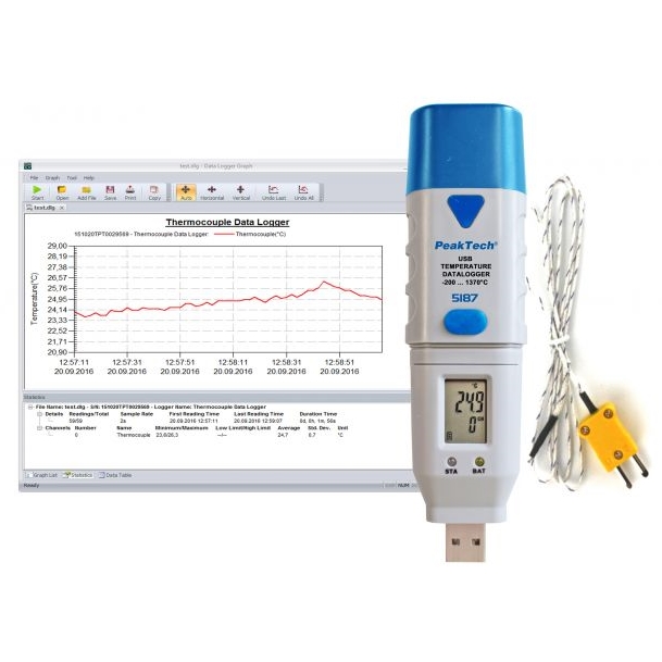 Datalogere USB (temperatură&umiditate, tensiune continuă, temperatură cu sondă tip K) - Peaktech P5185, P5186, P5187Peaktech P5185, P5186, P5187