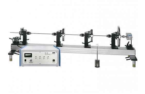 Setul permite realizarea de experimente cu o bară de torsiune de test, utilizând mase variate.