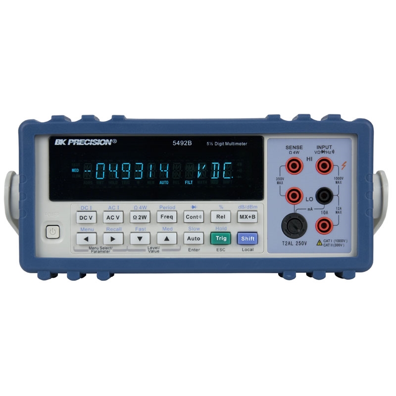 The B&K Precision model 5492B is a versatile 5½-digit, 120,000-count bench multimeter suitable for applications in education, service repair, and manufacturing. The instrument enhances your productivity with built-in math functions and USB connectivity.