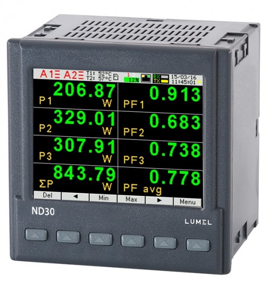 - Measurement and recording of 54 power network parameters, including current and voltage harmonics up to 51st, in 1-phase or 3-phase 3 or 4-wire balanced and unbalanced systems.