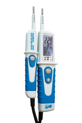 Tester tensiune cu afișaj LCD cu iluminare de fundal și bară grafică pentru măsurarea în curent alternativ și continuu de la 6 V la 690 V. În plus, oferă posibilitatea testării de continuitate cu semnalizare vizuală și sonoră, indicator de fază și succesiune faze, și testarea curentului rezidual(RCD).